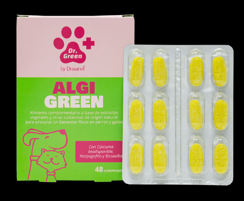 AlgiGreen é o primeiro suplemento nutricional para animais com as suas características, baseado em extratos vegetais secos de alta qualidade, padronizados e outras substâncias de origem natural para promover o bem-estar físico em cães e gatos e para prevenir a dor e inflamação das articulações e dos tecidos moles.
