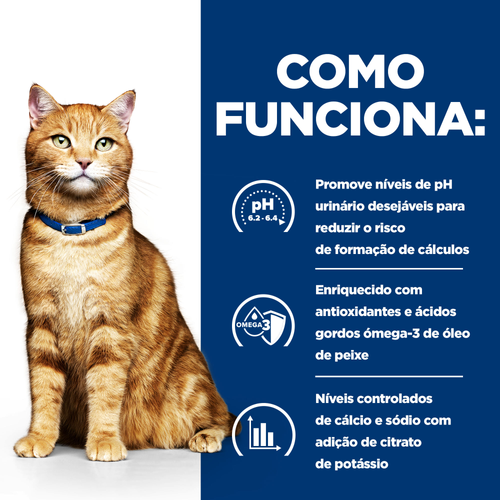 Reduz o risco de formação de cálculos de estruvite e oxalato de cálcio