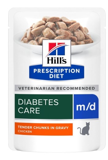 Hill's Prescription Diet m/d alimento para gato com frango é um alimento dietético completo para regulação do aporte de glucose (Diabetes mellitus) em gatos adultos. Este alimento contém um teor reduzido de monossacáridos e dissacáridos.