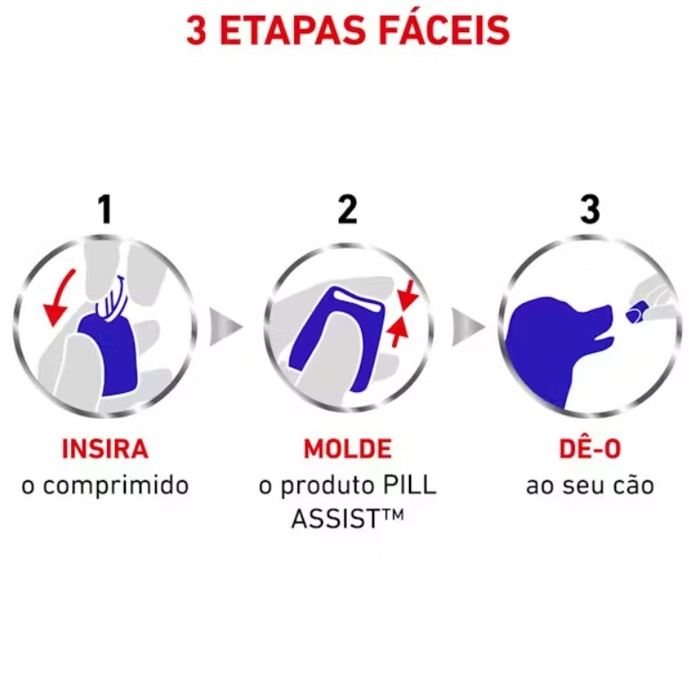 Recomenda-se adaptar as quantidades das refeições principais do seu cão de acordo com o número de Pill Assist™ administrados.