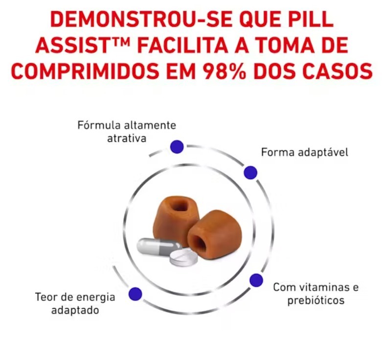O ROYAL CANIN® Pill Assist é um croquete moldável especificamente desenvolvido para facilitar a toma de comprimidos a cães adultos de raça pequena, média e grande.