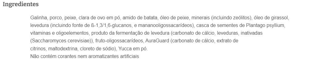 Contém extrato de mandioca para reduzir os gases desagradáveis.